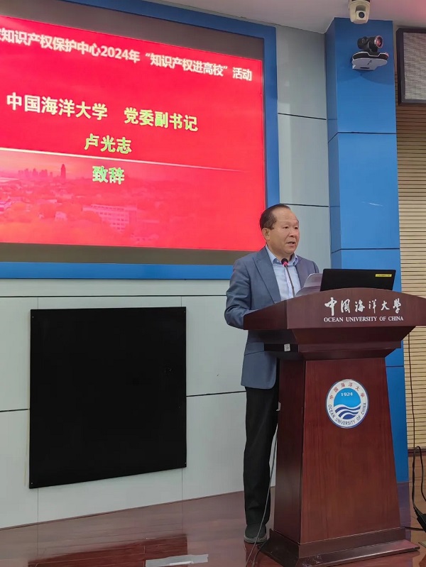 卢光志指出,保护知识产权就是保护创新,也是加快实现高水平科技自立自强的重要支撑。近年来学校先后入选首批高校知识产权信息服务中心、国家知识产权试点高校,为知识产权保护做出了积极贡献,科技成果转化工作呈现出蓬勃发展的良好态势。希望学校有关部门和师生把握机会,加强学习,努力提升知识产权保护、科技成果转化的意识和能力,着力打造科学研究的海大学派、服务社会的海大经验,为推动知识产权保护,服务科技强国、海洋强国建设贡献更大力量。