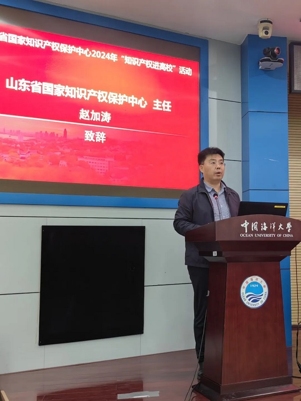 4月25日,宣传周主题活动——山东省国家知识产权保护中心“知识产权进高校”在崂山校区成功举办。中国海洋大学党委副书记卢光志,山东省国家知识产权保护中心党总支书记、主任赵加涛出席活动并致辞。青岛市知识产权保护中心主任郭大鹏、青岛市市场监督管理局知识产权运用促进处处长栾华、国家级知识产权保护中心(青岛)建设工作领导小组办公室执行副主任郑昆、崂山区市场监督管理局副局长李燕妮、国家知识产权局战略规划司苏强、中国海洋大学图书馆馆长谷强、青岛华慧泽知识产权代理有限公司董事长张万伟出席,校学术委员会办公室副主任褚嘉杰主持活动。