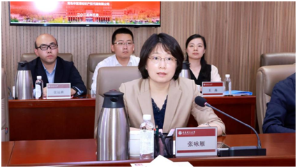 学校党委副书记车景华、青岛市市场监督管理局局长张咏雁和山东省国家知识产权保护中心副主任祁新宇等领导出席会议,会议由学校党委常委、副校长陈连军主持。