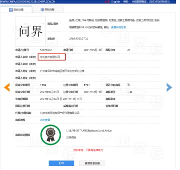 据商标局官网显示,近期华为被转让了商标——“问界”。
