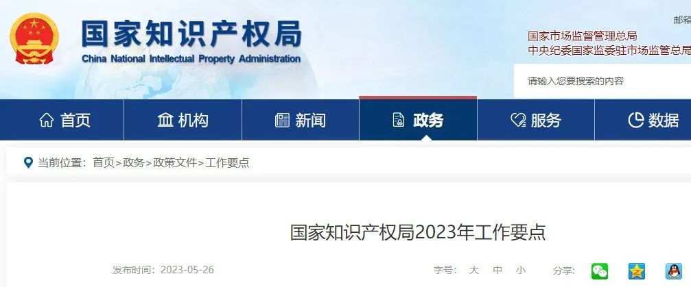 近日,国家知识产权局发布2023年工作要点。其中提到,大力提升知识产权审查质量效率。制定审查工作年度目标任务,对标高质量,把握高标准,推进审查理念更新、技术革新和工作创新取得新成效。做好实用新型明显创造性和外观设计明显区别的审查。做好外观设计国际申请审查。加强对预审业务的规范管理。完善专利商标审查协作机制。继续严厉打击非正常专利申请和商标恶意注册、囤积行为,及时转办有关案件线索。严格地理标志保护产品认定和以地理标志作为集体商标、证明商标的注册审查。