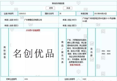 名创优品”的国内商标于2013年9月24日、即公司成立2个月后申请,2015年2月核准。