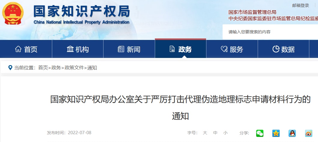 近日,国家知识产权局办公室发布关于严厉打击代理伪造地理标志申请材料行为的通知。其中提到,为深入贯彻党中央、国务院关于“放管服”改革的决策部署,持续加大对违法违规代理行为的打击力度,将代理伪造地理标志申请材料行为作为重点整治内容。