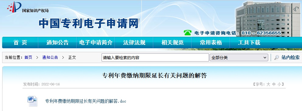 答:延长后的专利年费期限可在外网查询。具体缴费金额与缴费截止期限可以通过“中国及多国专利审查信息”平台查询。