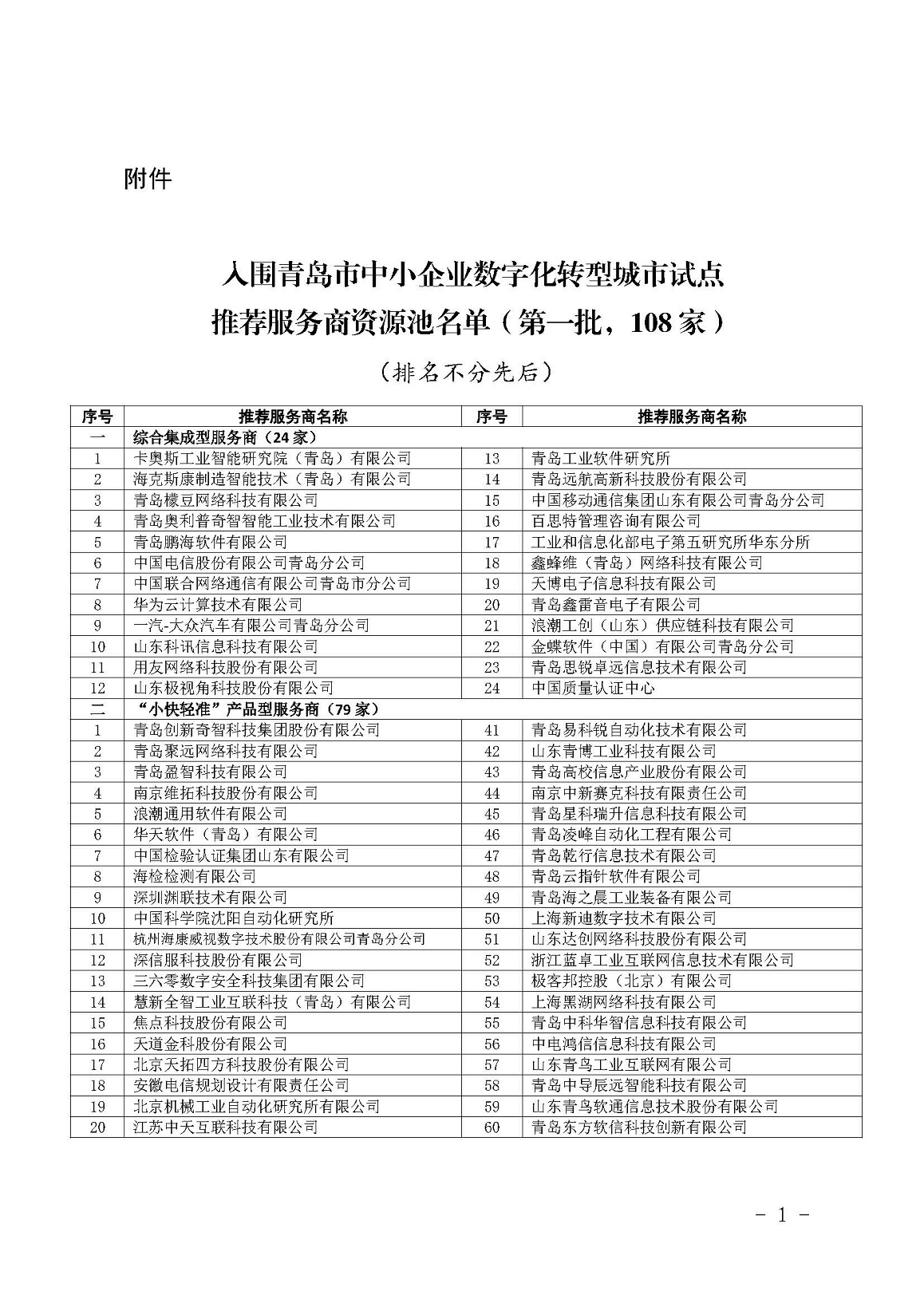 附件: 入围青岛市中小企业数字化转型城市试点推荐服务商资源池名单(第一批)